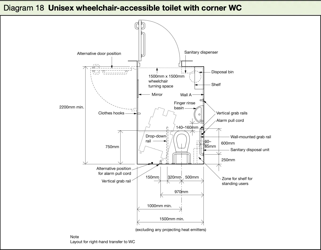 The above article serves as a guide and highlights some of the features that are important to disabled users. For specific design requirements and regulations, please refer to Part M of the Building Regulations and BS8300.