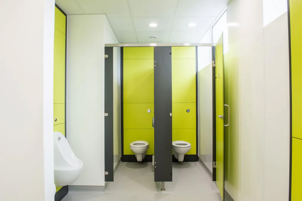 - Toilet Cubicles and Panelling – the toilet cubicle panels frequently provide the colour to the washroom area. The choice of panel material is important to increase the life of the washroom.