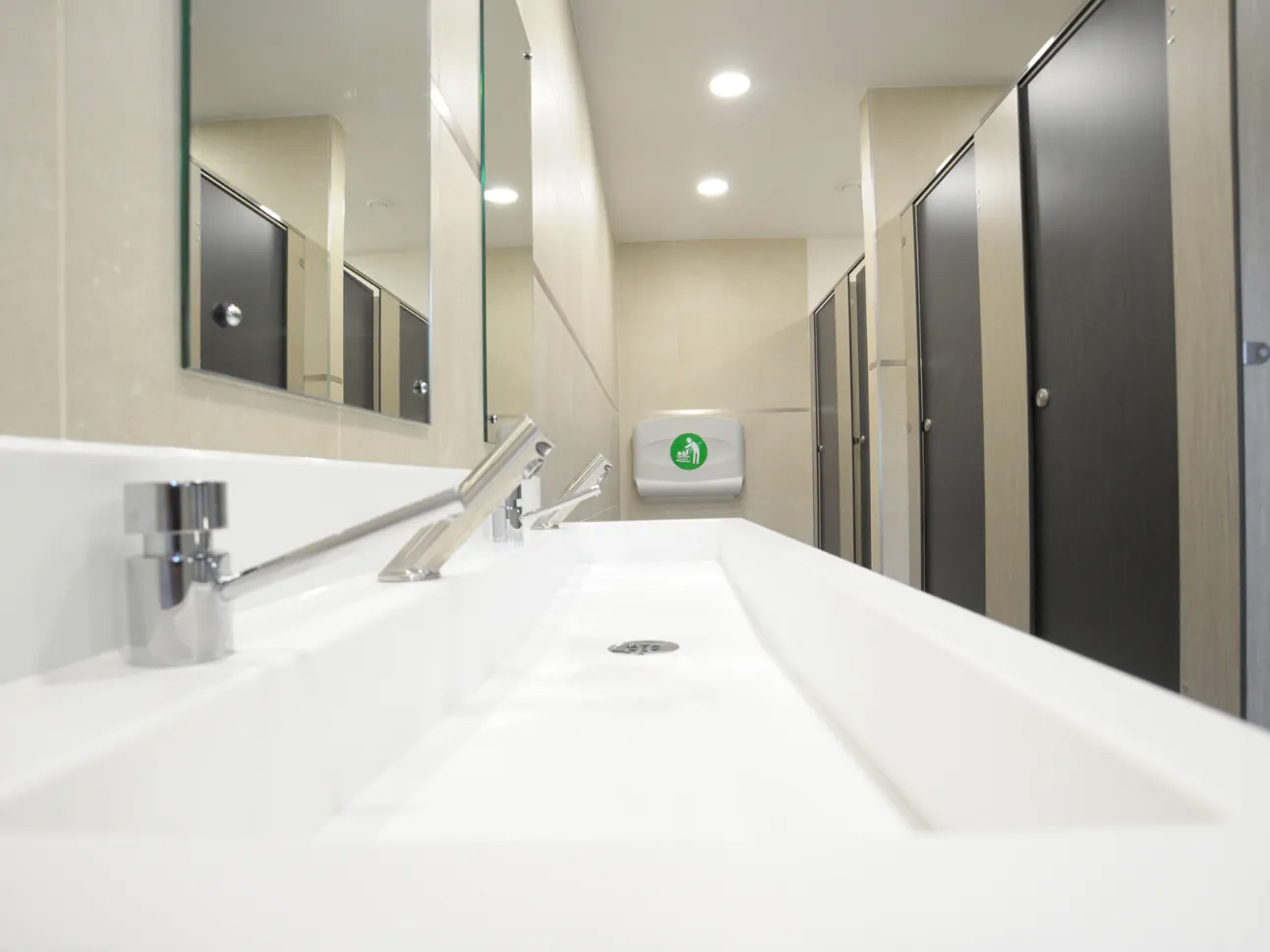 The walls were covered in a large format wall tile to match a previous washroom refurbishment we carried out at Cofton. However, in the shower areas, we fitted Altro Whiterock for unrivalled hygiene and waterproof performance.