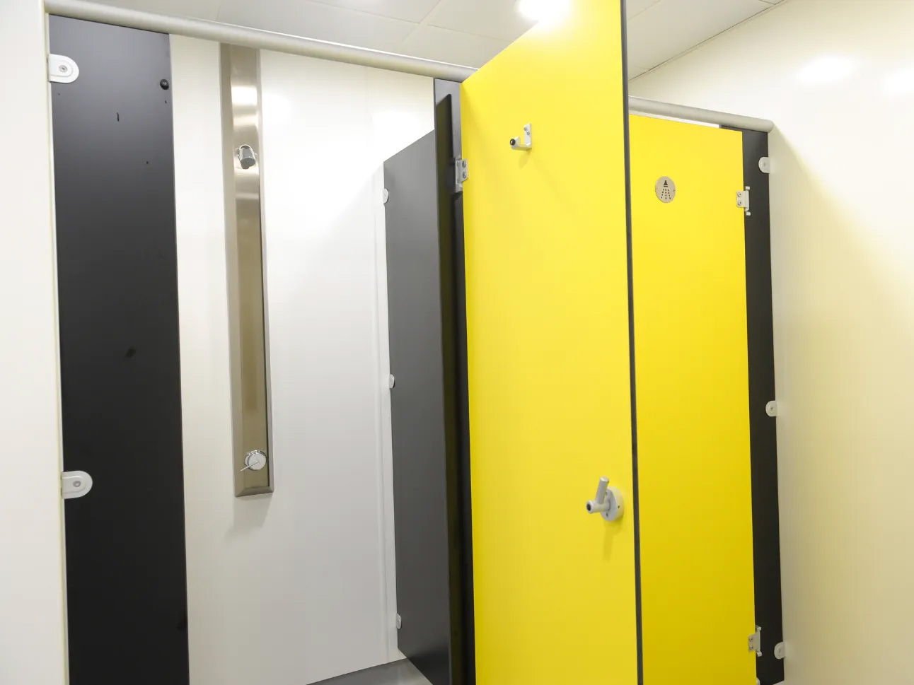 The school was keen to have two private showering cubicles, as well as the large format communal shower space. These cubicles were made from solid grade laminate, a waterproof material that’s completely impervious to water. Stainless steel fixings and hardware were used throughout this project to prevent any issues with rust in the future.