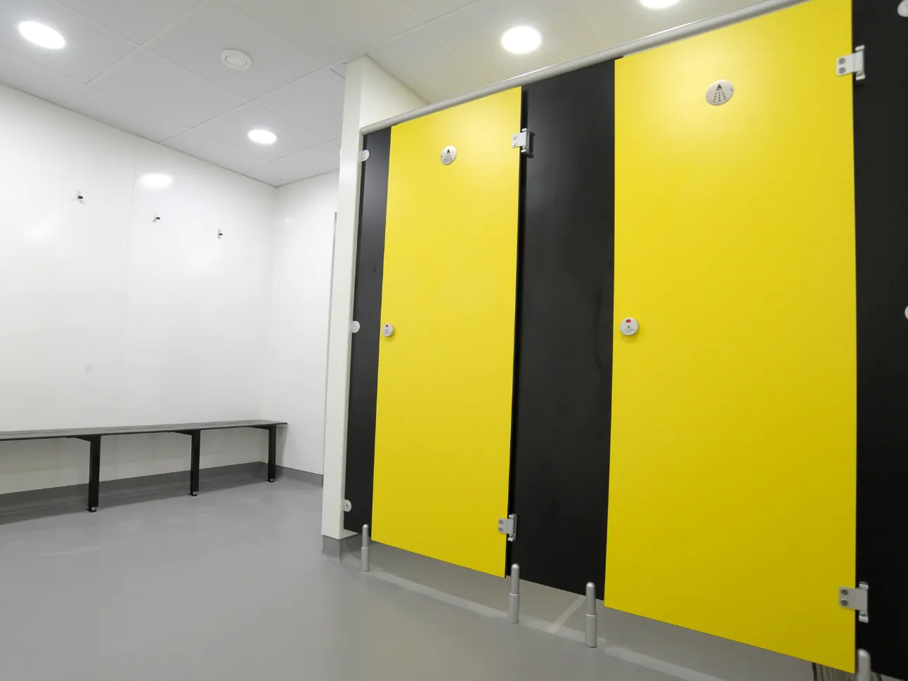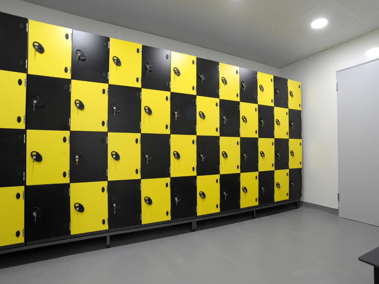 The school colours of yellow and black were brought into the room, featuring on both SGL changing benches, and 12 sets of four-tier lockers. These hard-wearing lockers are incredibly durable, built from a metal carcass and solid grade laminate doors.
