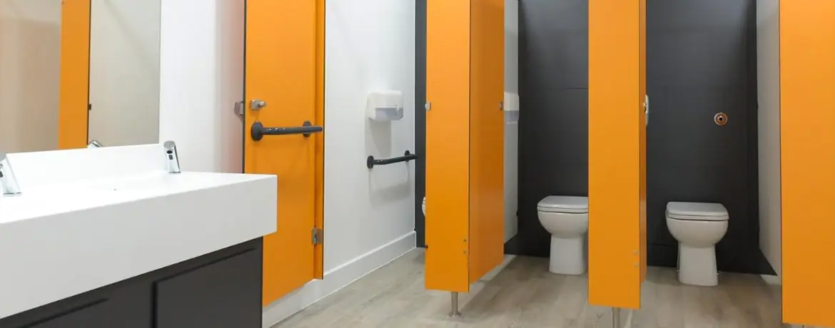 As well as being practical, a commercial bathroom needs to be aesthetically pleasing, easy to clean, and accessible for families and those with disabilities. It needs to be spacious enough for people to manoeuvre, while still containing privacy dividers and all the necessary fittings.