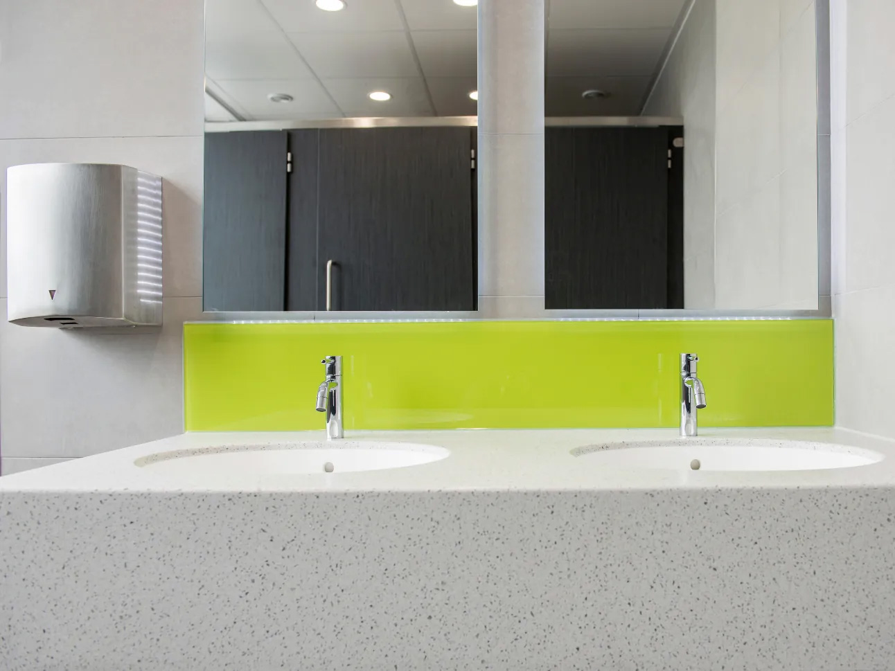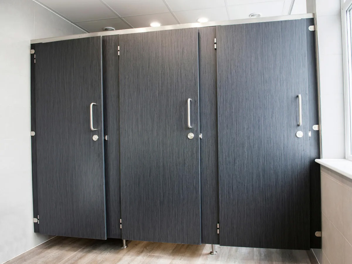 New toilet cubicles and partitions were installed, made from High-Pressure Laminate, which is incredibly durable and resistant to water. Pipework was concealed behind duct panelling systems also made from the High-Pressure Laminate, keeping things looking smart, but also reducing exposed surface areas, another easy-clean feature.