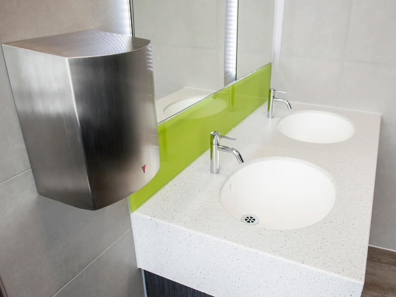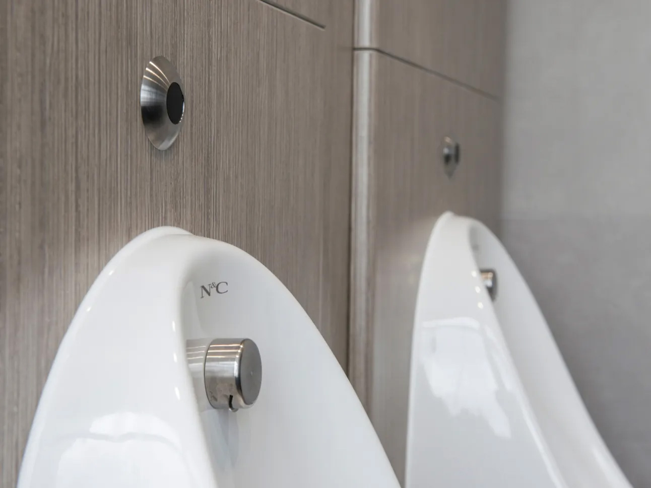 Other hygiene and usability improvements were also implemented, in keeping with the executive washroom theme. Including sensor-activated flushing systems and energy-efficient hand dryers selected by the client.