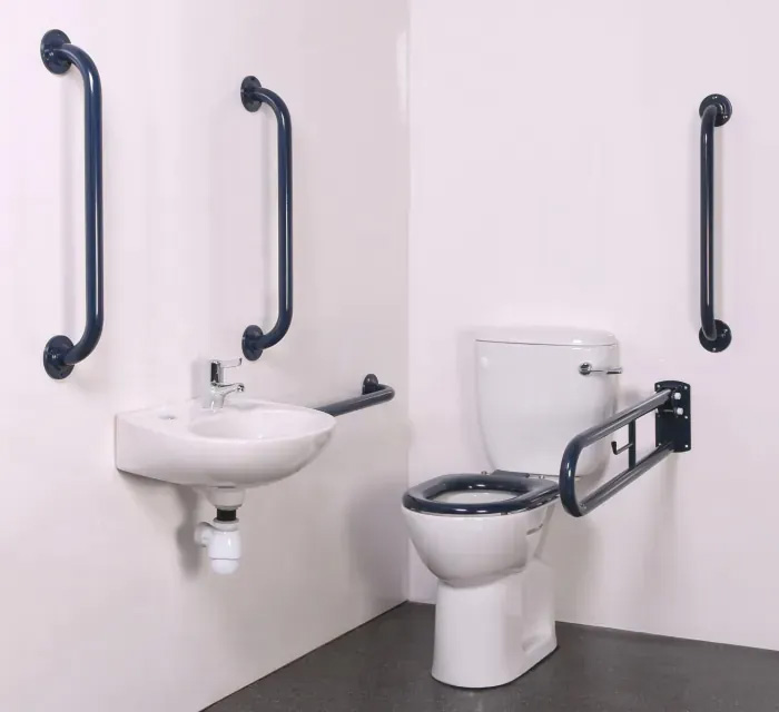With all the best intentions in the world, sometimes, you just can’t comply with Doc-M, and that’s ok. For instance, you might have a washroom up a tight narrow stairwell that’s inaccessible for wheelchair users, or maybe the dimensions of the room stops you from being able to install a full Doc-M pack. The idea in these circumstances is to make the washroom as accessible as possible. Some customers have put in an ambulant disabled washroom cubicle, which is a slightly larger toilet cubicle with an outward opening door and some grab rails.