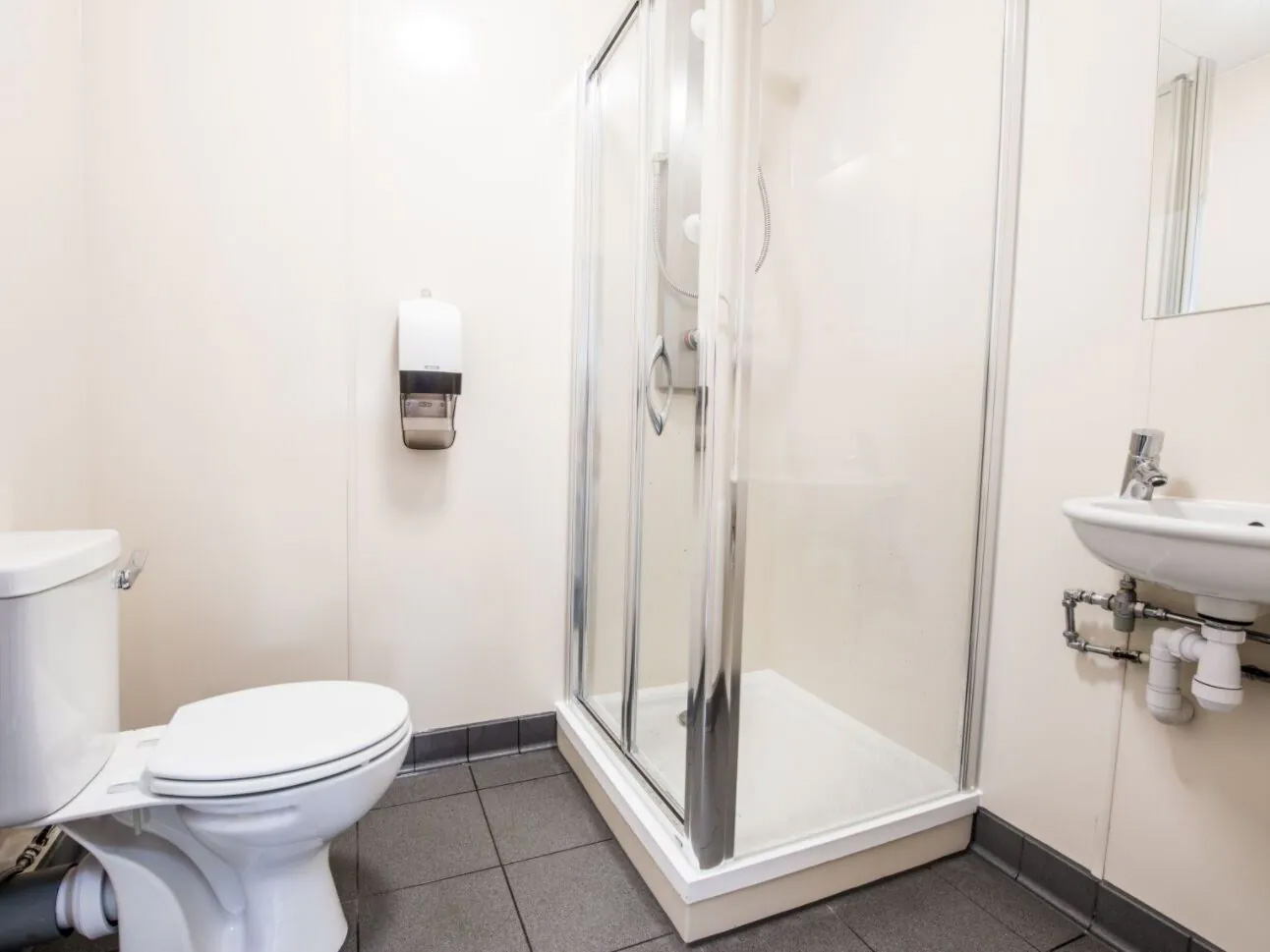 All vanity units were constructed from solid grade laminate underframes, a robust, waterproof material that will never swell or weaken from ingress water or damp. This material was also used for all the toilet and shower cubicles, which were fitted using stainless steel hardware for durability and longevity. We included individual washing cubicles where users can brush teeth, shave and freshen up with some privacy.
