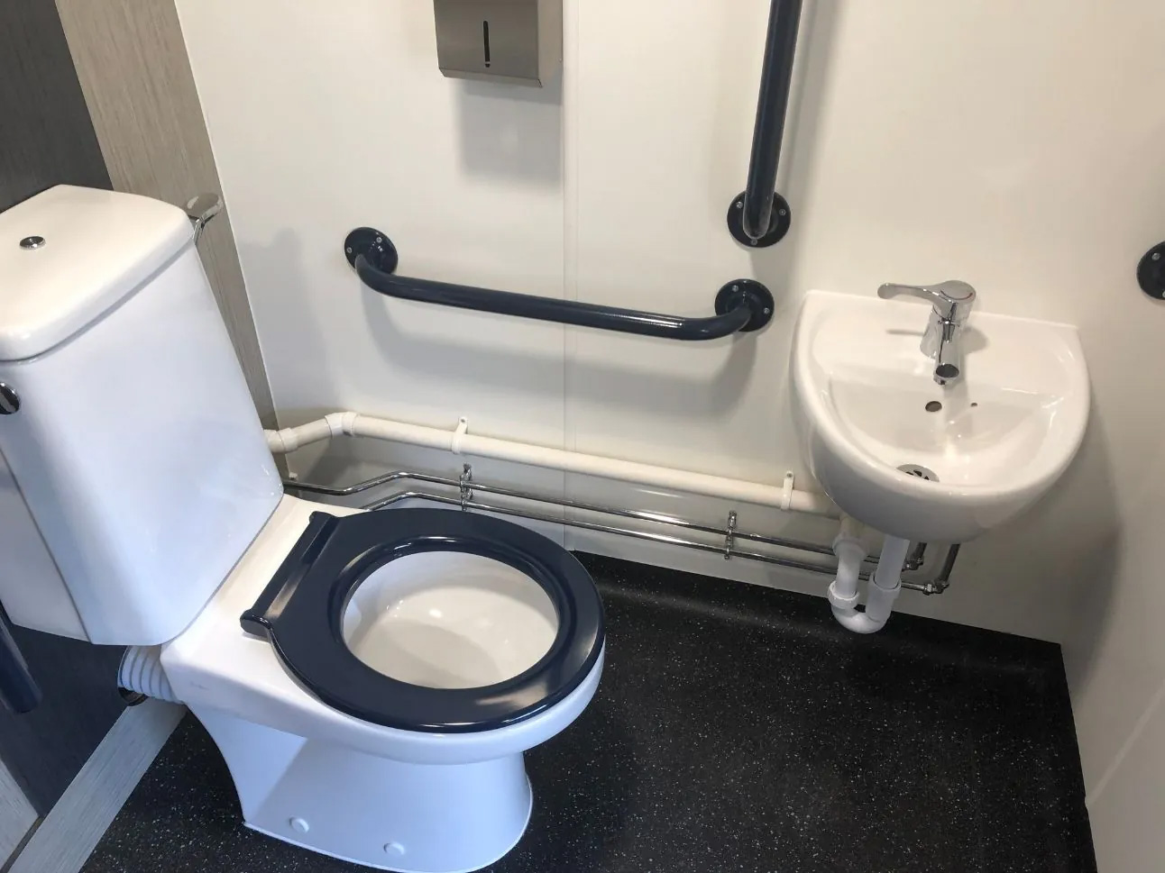 Vitra back to wall toilet pans were used within the cubicles, which were of a solid grade laminate construction. This material is one of the most durable and long-lasting available. Being completely impervious to water, it will never swell or weaken from ingress water, delivering a reliably tough cubicle that can stand up to the school environment. The space in one of the girls’ washrooms was changed slightly so that an ambulant cubicle with a full Doc-M pack could be fitted for the use of disabled users.
