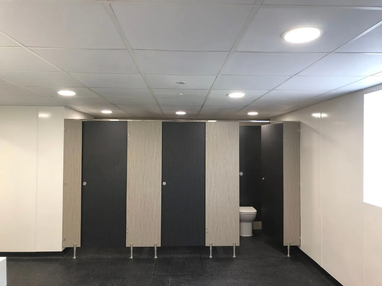 Altro Whiterock wall cladding was used throughout the washrooms due to its high hygiene values, further aiding the wash spaces with easy clean functionality. Where the original ceiling heights varied, we installed a new suspended ceiling to deliver a cleaner finish, but also to house a new ventilation system to control humidity and help remove foul odours.