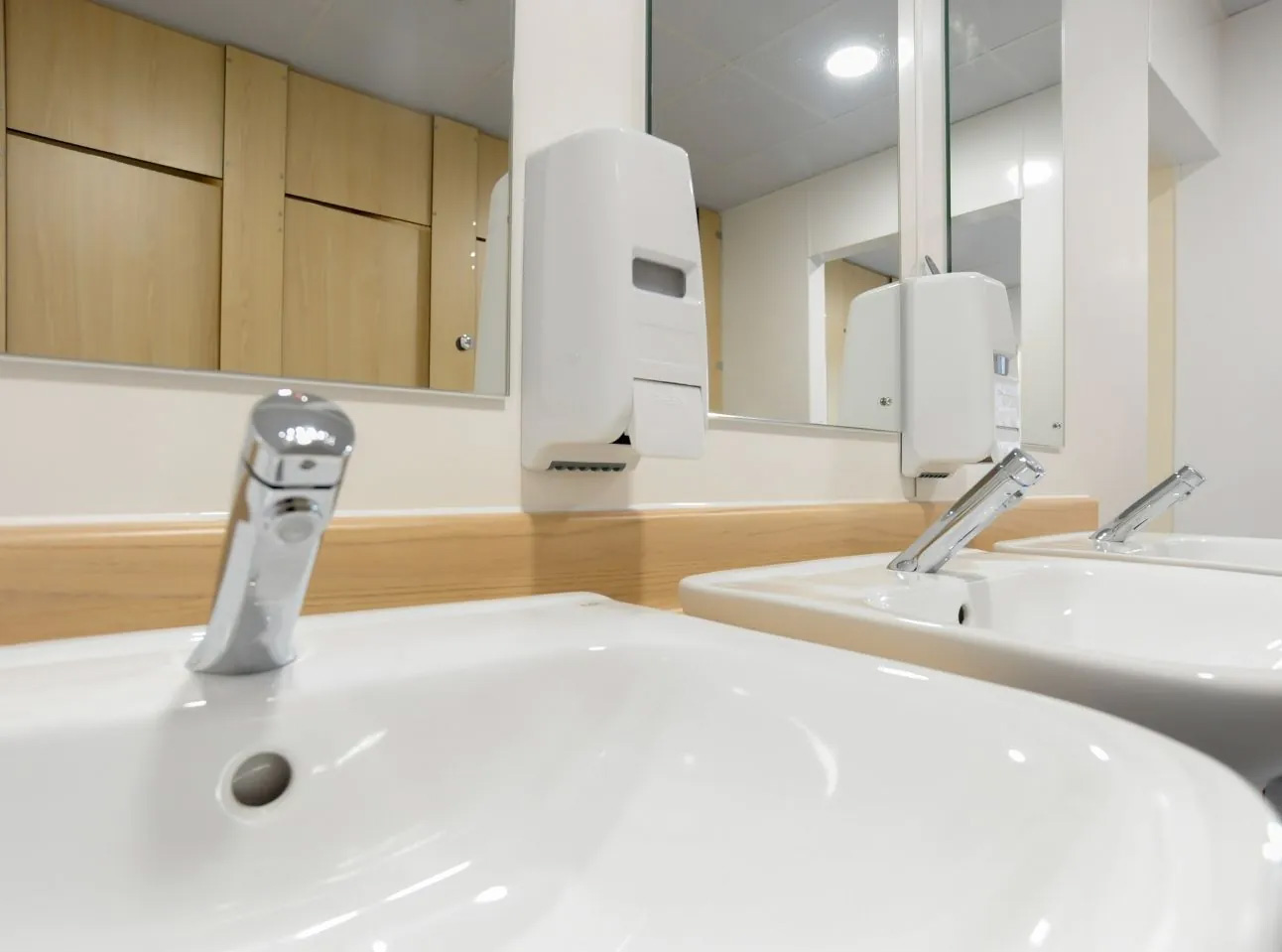 We also fitted non-concussive mixer taps, an option that only emits water for a set period of time once pushed. These taps also blended both hot and cold water to ensure the water flow was a safe temperature for users. Non-concussive taps are a strong option in school washrooms as they prevent taps from being accidentally left on, but also remove the need for users to touch the tap once they’ve washed their hands, reducing the spread of bacteria.