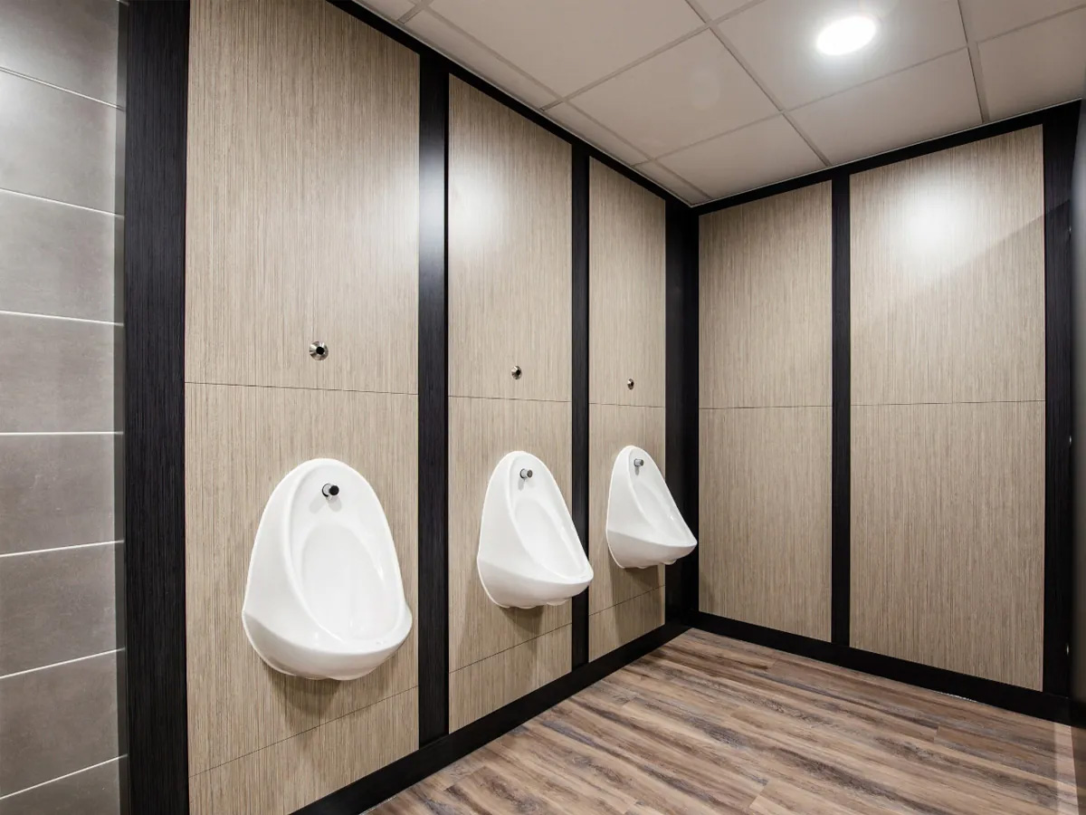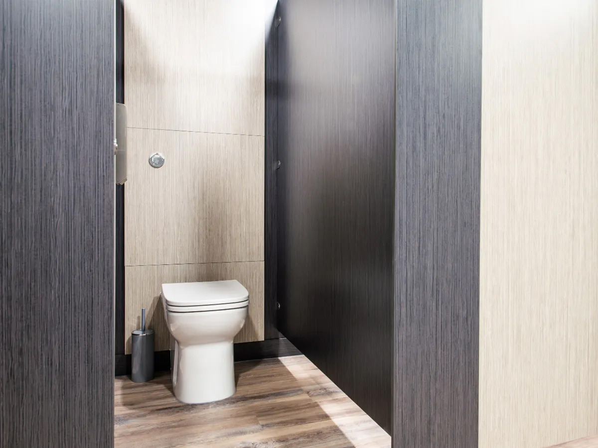 In the men’s washroom, existing cubicles built from cumbersome studwork were removed to allow us to make better use of the internal space. Full height DUCT sets were installed for all the toilets and urinals along with solid grade laminate cubicles.