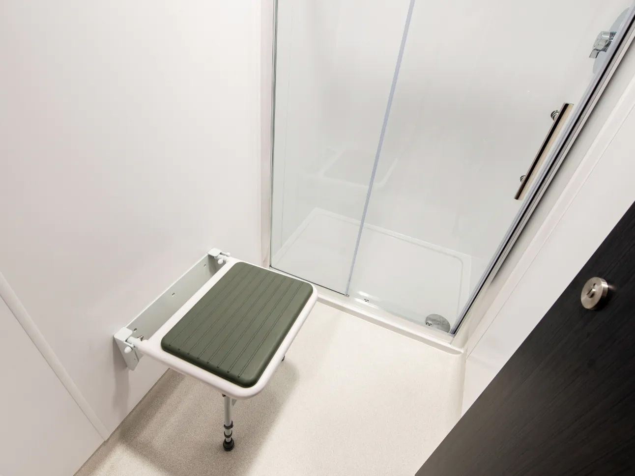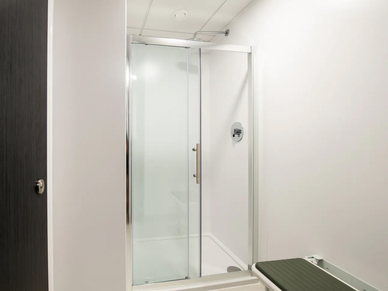 After a thorough design and specification process, we began transforming the layout of Novatech’s shower room and male washrooms. An alcove in a corridor was essentially dead space and by removing the walls behind it we were able to incorporate it into the existing shower room. This extra space allowed us to redesign the internal layout and build two private showering areas that included large format shower trays, glass shower enclosure doors, and Rada V10 concealed shower controls partnered with Bristan Overhead Soaker shower heads. Each showering area had a private changing space and heated towel rail, along with Altro Whiterock wall cladding and Altro Pisces anti-slip flooring.