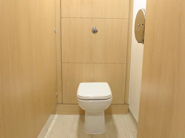 Meanwhile, at the hand wash area, we fitted moulded solid surface wash basins partnered with non-concussive Delabie taps. TMV3 valves were also fitted to ensure that users were protected against scalding. TMV3 valves blend the hot feed with cold prior to it coming out of the hot tap, giving site managers ultimate control on hot water temperature.