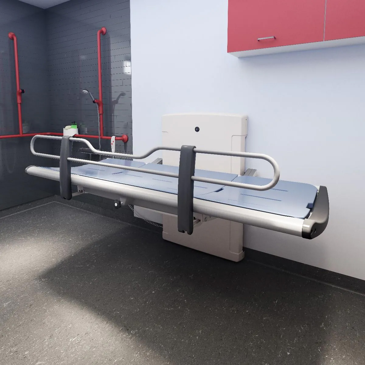 Pressalit 1000 Series Shower and Changing Table with Electric Height Adjustment