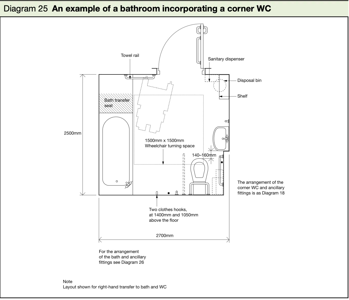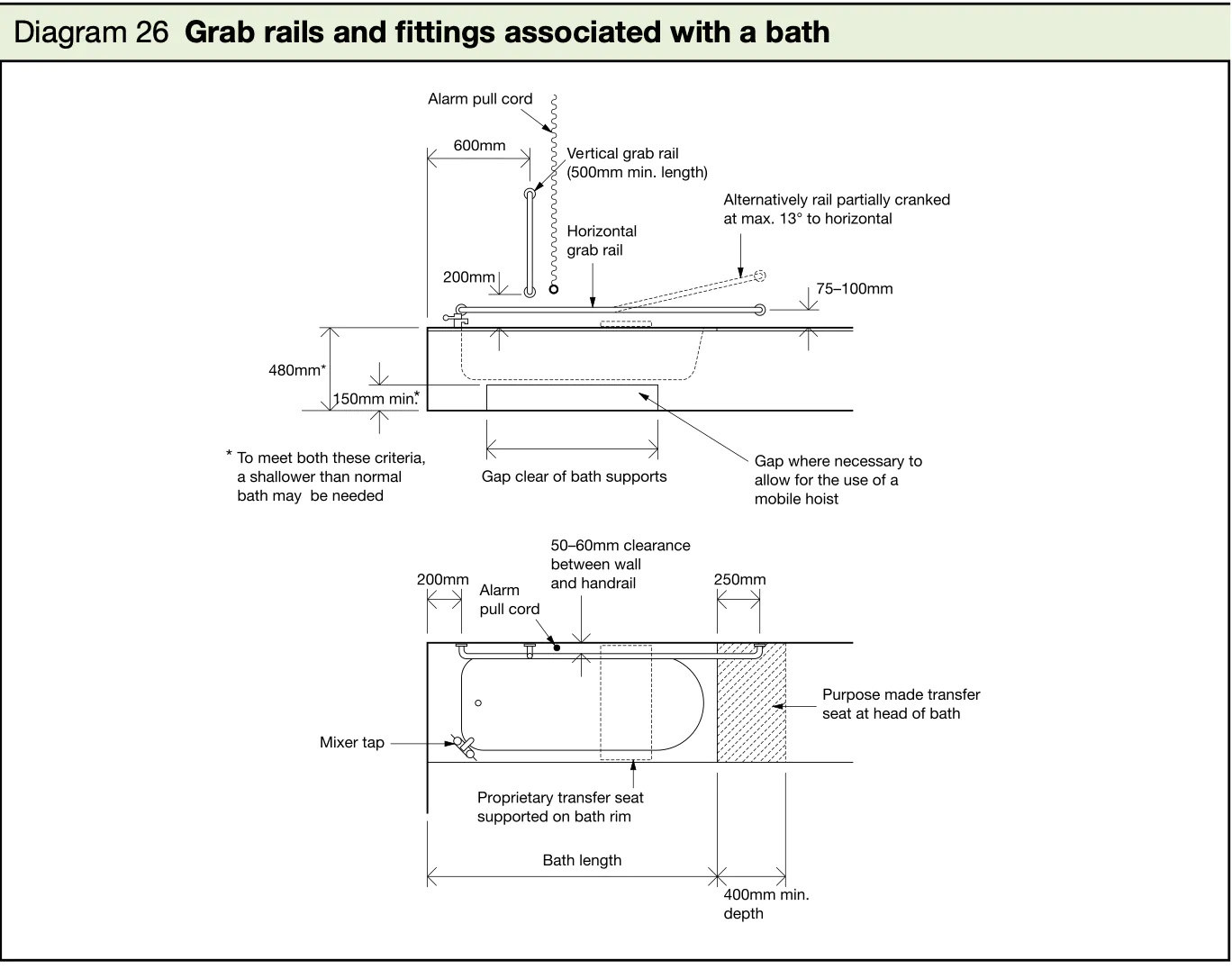 - The bath should be provided with a transfer seat, 400mm deep, and equal to the width of the bath.