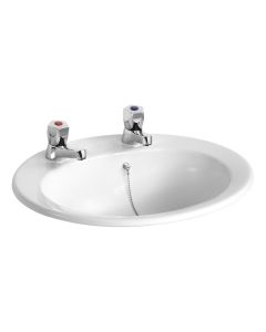 This Armitage Shanks Sandringham 21 Countertop Washbasin 50cm - 2 Tap Holes, No Chainstay Hole provides a popular, stylish, and cost-effective solution for most commercial washrooms.
