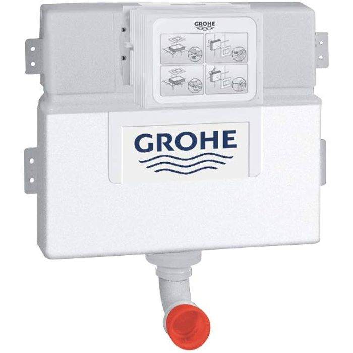 This concealed Grohe toilet cistern product has a finished installation height of 0.82m and the water supply comes from left, right or back. It is insulated against condensation and includes fixing brackets.