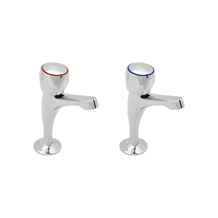 The 13mm pillar taps are manufactured from chromium-plated brass and are complete with fluted handles which are moulded to give a comfortable and easy operation.